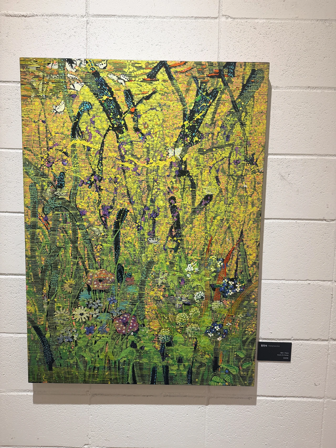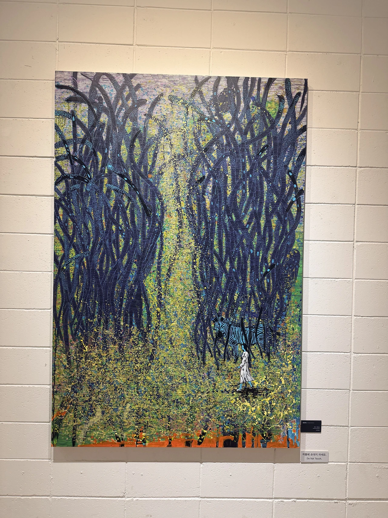 작품을 가까이에서 보면 가로줄들이 가 있는데 이것이 마치 잡초와 나무들을 더 의미있고 생명력있고 가치있게 들여다보려고 하는 마음에서 나온 것은 아닐까?