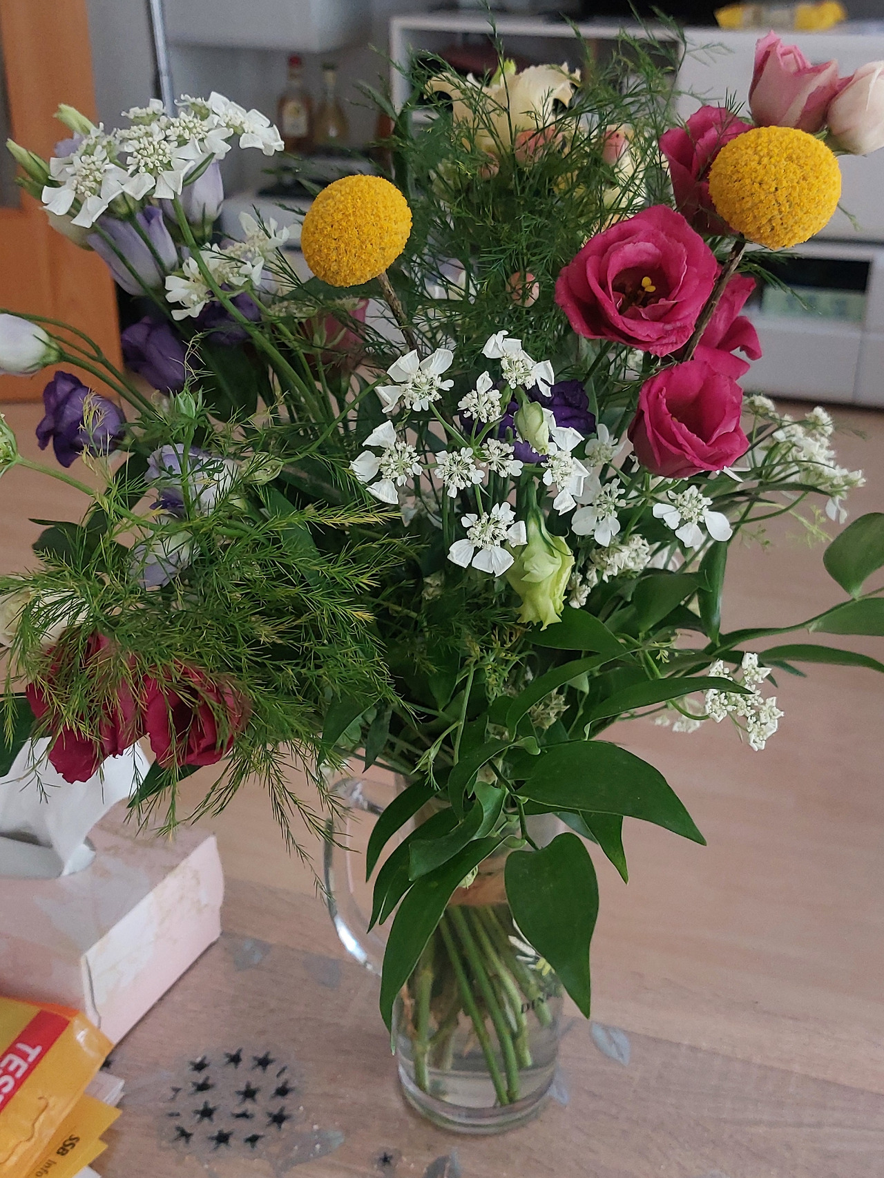 시험이 끝나고 뒤풀이 때 받은 꽃다발. 살면서 받은 꽃다발 중에는 제일 큰 꽃다발이었다. ㅎㅎ