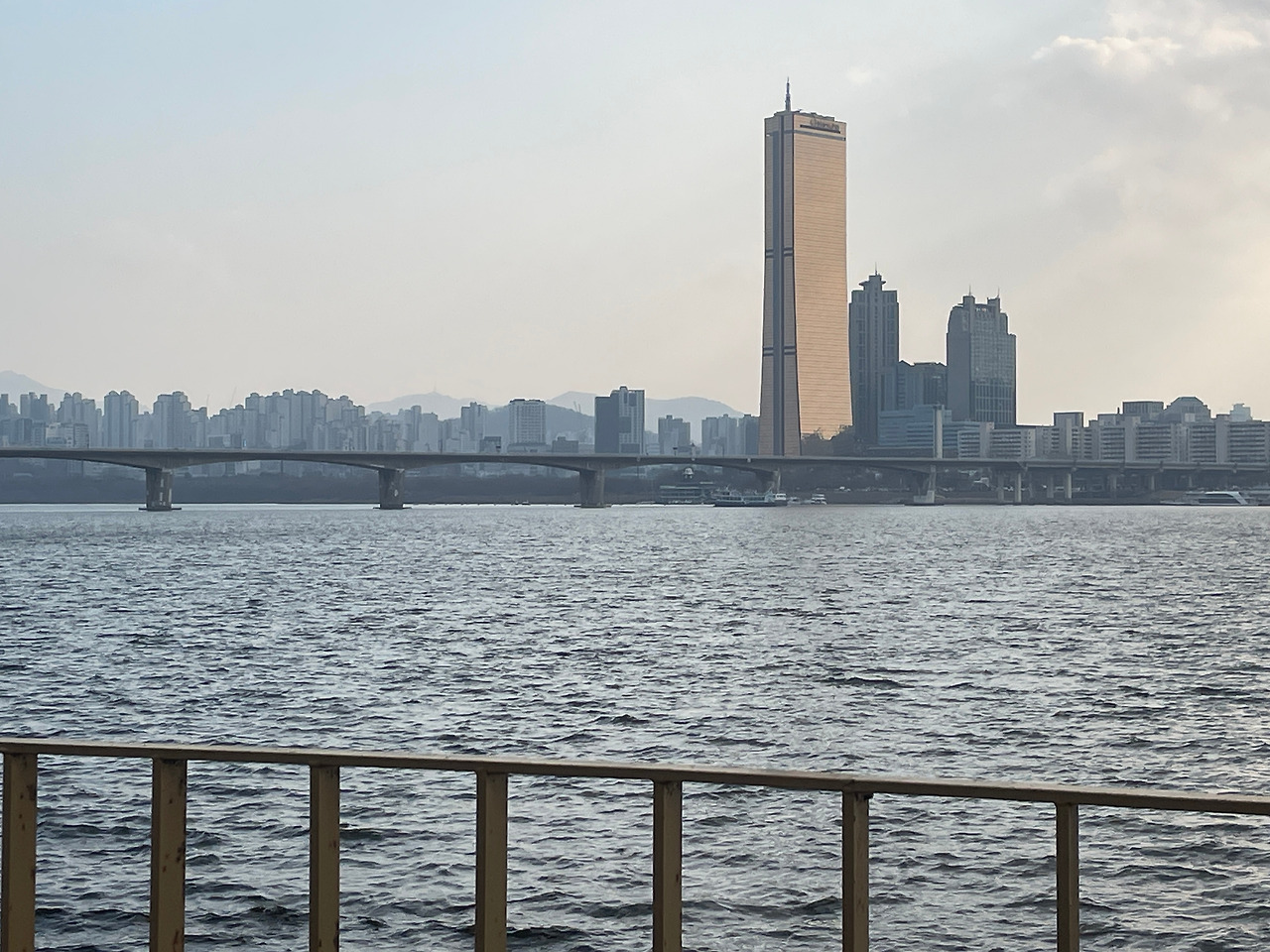 8분쯤 전에 인류와 지구의 고향에서 출발한 빛이 강물에 부딪쳐 열십자로 쪼개진다.