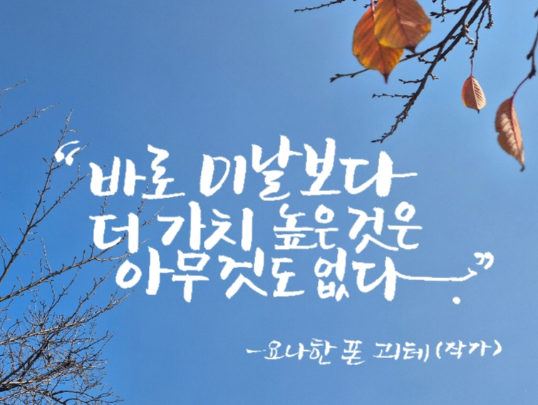 괴테가 말한 " 바로 이날보다 더 가치 높은 것은 없다."는 말은 단순한 명언이 아니라, 우리가 자주 잊고 사는.