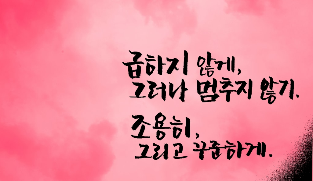 급하지 않게, 그러나 멈추지 않고.