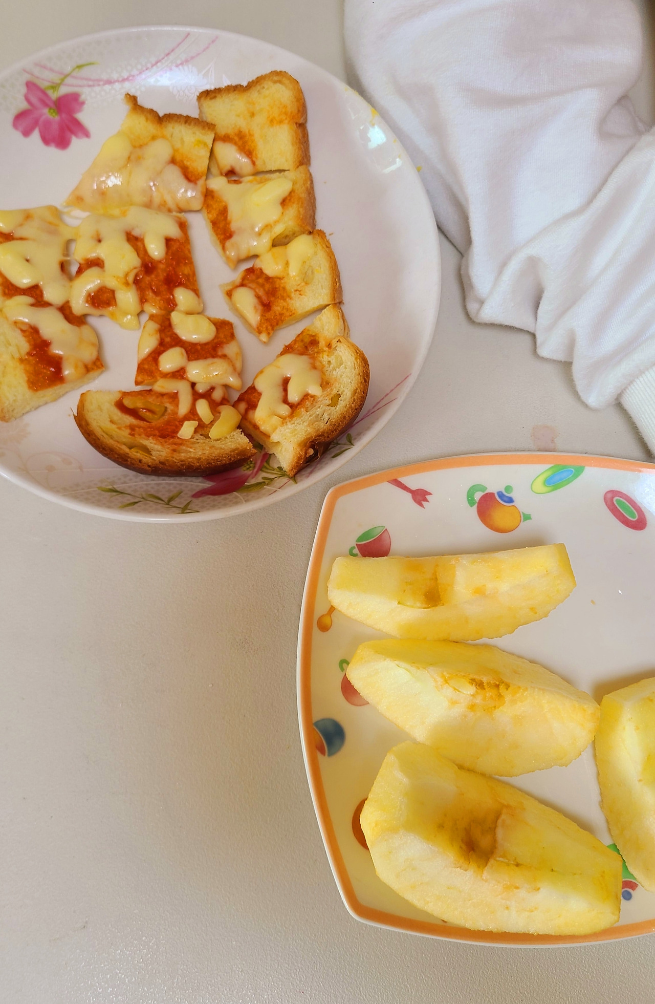 아이의 반응을 보니, 살짝 입을 대더니, 우유만 먼저 마신다. 별로인가?(요리 개발자 엄마의 불안한 마음ㅎ)싶어서 급하게 식빵에 케첩을 바르고 모차렐라 치즈를 얹은 피자빵을 해서 함께 주었다.