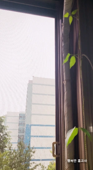그렇게 자라더니 자신의 줄기를 뻗어 올려 베란다 창문의 버티컬을 붙잡고 쑥쑥 올라갔다. 그것도 얼마나 신기하던지. 하루하루 점점 위로위로 뻗어 올라가는 줄기들과 그 줄기 곁가지로 자라는 잎들이 참 싱그러워 보였다.