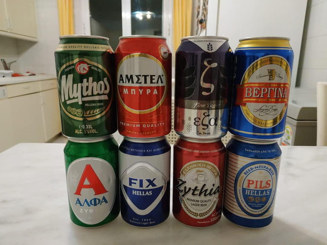 우리 동네 마트에서 파는 맥주들은 총 7종이었다(사진 윗줄 왼쪽에서 두번째는 네덜란드 맥주 암스텔). 윗줄 왼쪽부터 시계방향으로 이름을 적어보면 미토스, 엑소, 베르기나, 필스, 지티아, 픽스, 알파 뭐 이렇다. 위 맥주들은 전부 라거다. 어떤 브랜드는 라거와 밀맥주가 같이 나오기도 하는데 그리스 사람들은 밀맥주는 별로 좋아하지 않는 거 같더라. 현지 지인들과 가끔 저녁자리를 했는데 그들이 밀맥주 마시는 걸 본 적이 없다.