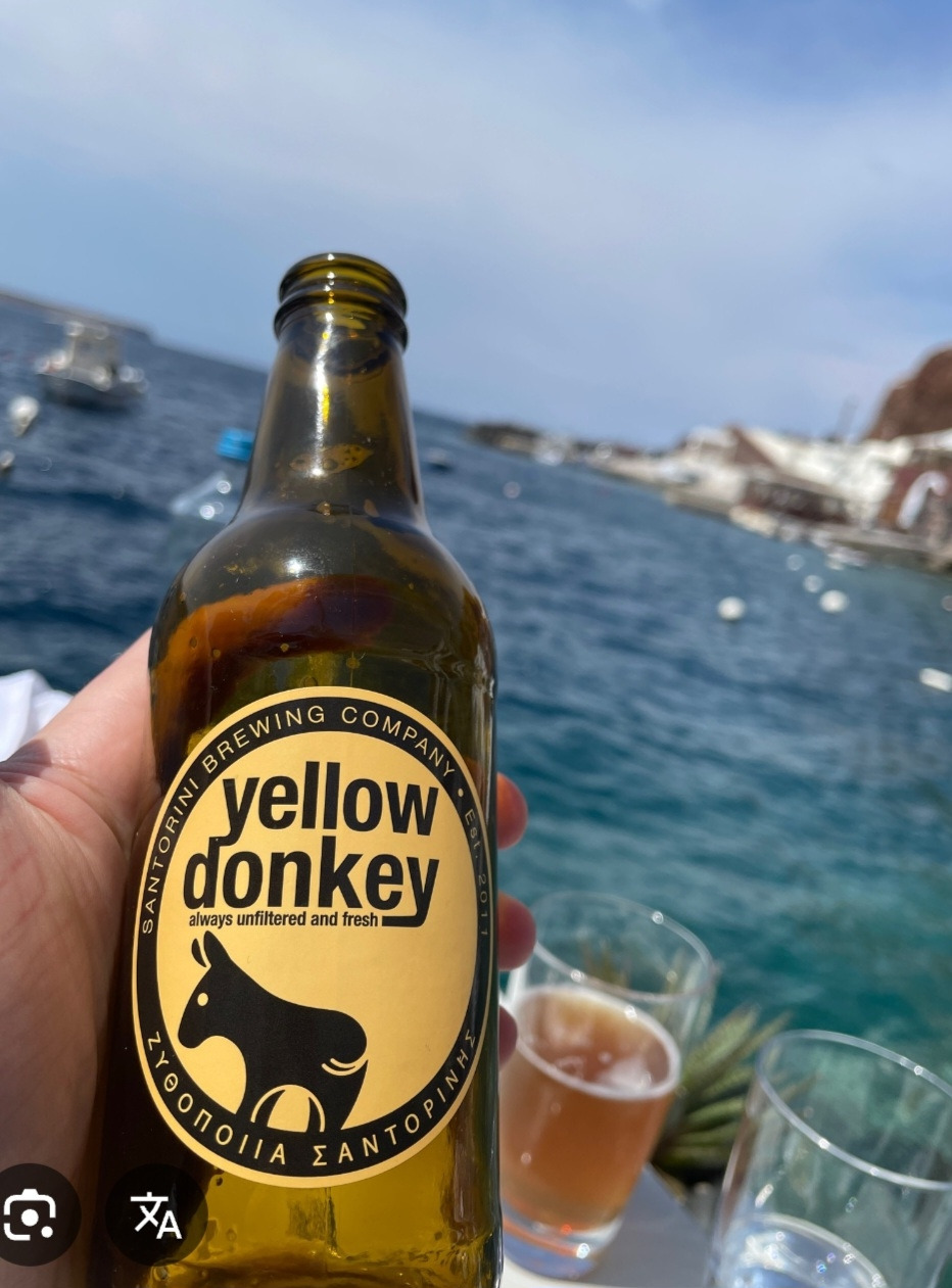 이런 평범한 맥주들 외에 지역 특산물 맥주도 있다. 우선 산토리니의 Yellow Donkey 맥주이다(Red Donkey, Crazy Donkey도 있음). 산토리니는 언덕이 많기 때문에 당나귀(donkey)를 이용해 좁고 가파른 계단을 오르내리며 사람과 짐을 운송한다. 그래서 아예 당나귀를 이 섬의 마스코트로 삼아 기념품도 팔고 맥주도 생산하나 보다. 내가 마셔본 Yellow Donkey 맥주는 뒤끝에 과일향이 났던 기억이 난다. 사실 산토리니에서 무슨 맛이 더 필요하랴, 세계 최고의 주변 경관과 맑은 공기가 그 자체로 맛과 멋인데.