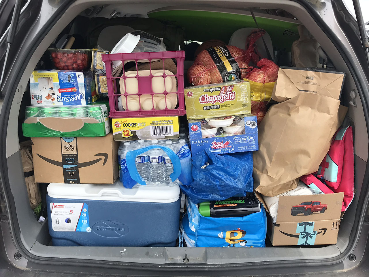 - 나는 로드트립에서 많은 기술을 연마했다. 그 중 하나는 자동차 조수석에 앉아서 주먹밥 만들기 기술이다. 내가 앉은 자리에는 두 개의 가방이 내 다리 사이에 항상 있었는데, 그 중 하나는 도시락 제조 가방이었다. 달리는 차 안에서 비닐 장갑을 끼고 밥이랑 김자반을 비벼 주먹밥을 만든다. 아이들은 그것으로 저녁을 해결하고 난 굶었다. 남편은 햄버거로 해결.