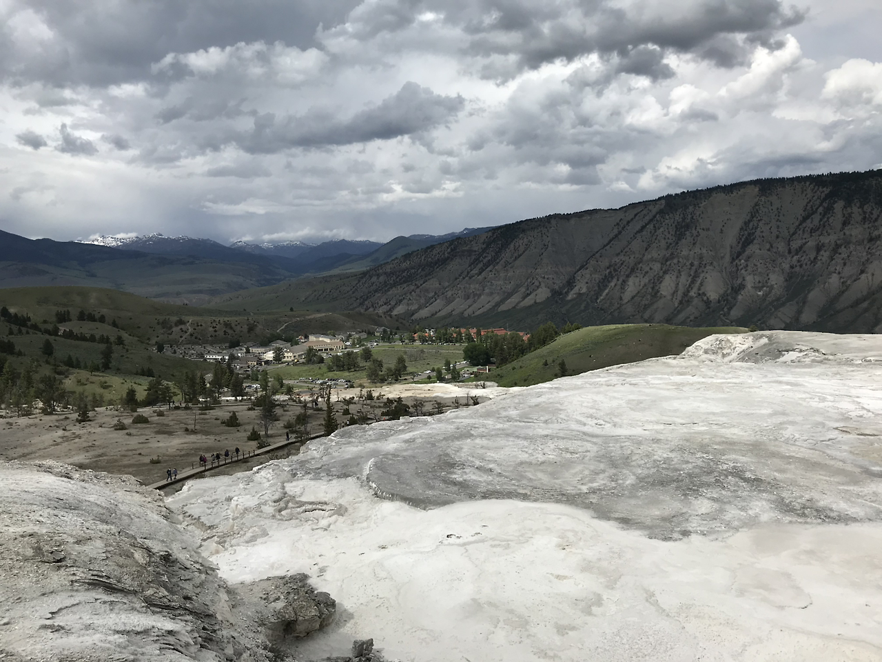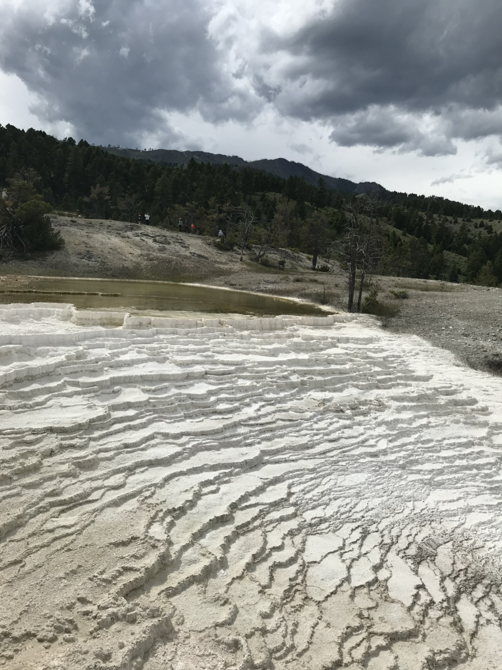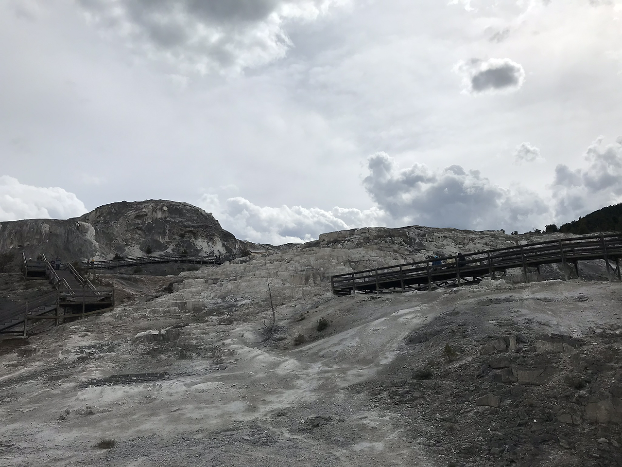 다음 코스인 Mommoth terrace 에서는 약간의 등산 느낌으로 올라갔다. 얼음 조각 같은 기묘한 모양들이 펼쳐져 있었는데 별 감상 없이 사진찍고 올라 가는 데 목표를 둔 것 같다.