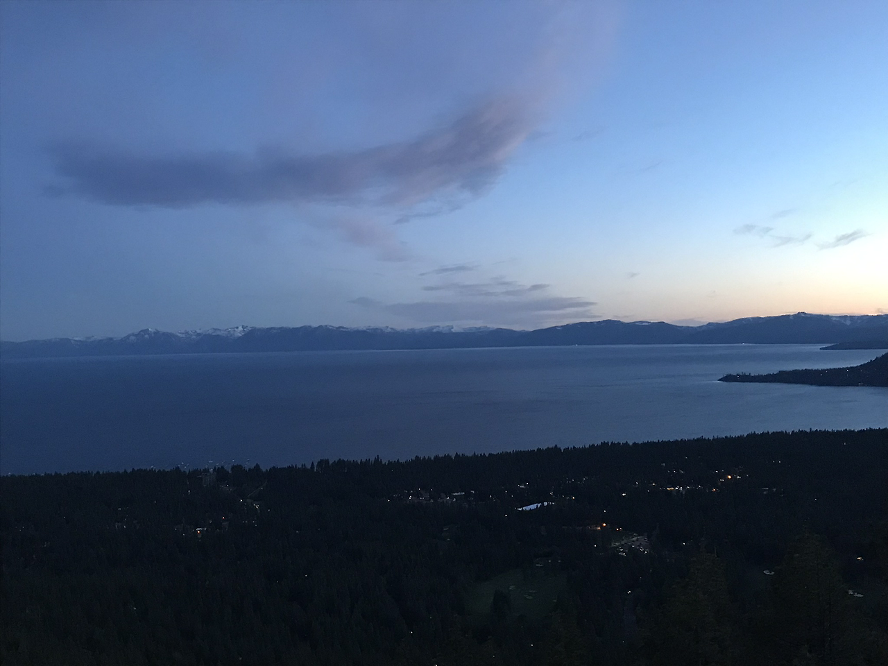 씻고 저녁에 타호 호수 일몰을 보자며 나섰다. 출발 전 아이들 볼 동영상도 다운받고 근처 주유소에서 주유도 하고 40분 정도 가는 길인데, 주변을 살펴보니 이미 해가 떨어지고 없다. 그것고 모르고 남편은 신 나게 해발 2000미터 산을 오르고 있었다. 점점 어두워지자 일몰을 보지 못한다는 사실을 깨달았고, 호수가 제발 보이기를 빌며 계속해서 산을 올랐다.