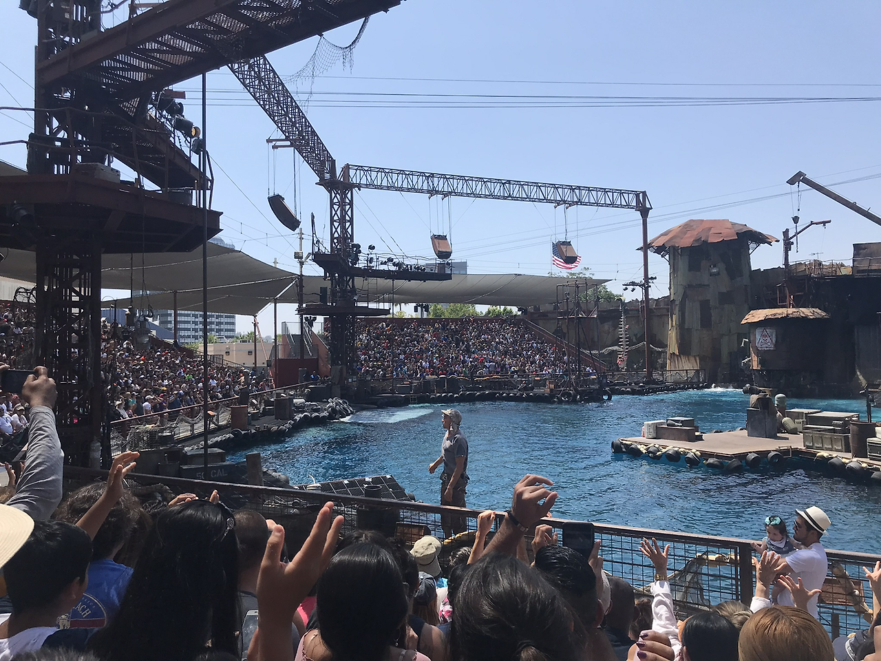버거로 점심을 먹고 2:30에 하는 <워터월드 쇼>를 보았는데 재미있었다. 보트가 물 위를 날아가기도 하고, 불쇼도 하고 아주 흥미진진했다. 오후에는 덥기도 하고 극성수기인지라(독립기념의 날) 사람들이 몰려 큰 아이는 아빠와 <쿵푸팬더 존>에, 나와 동생들은 <물놀이터>에서 더위를 식혔다.