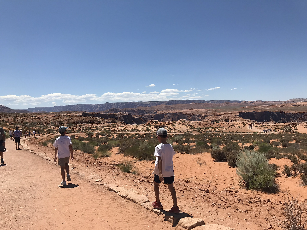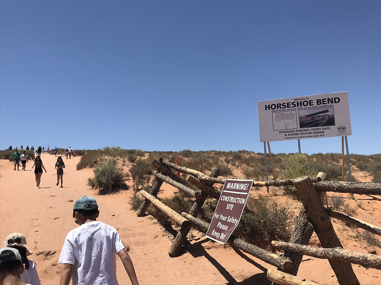 사진으로 보았던 홀스슈 밴드의 엄청난 광경을 상상하며 언덕을 넘었는데 5분의 1 정도 온 거리였다. 100도(F)의 온도에 구름 한 점 없고 땡볕에 사막 모래 길을 걸으니 어질어질했다. 힘들 줄 알고 갔지만 진짜 힘들었다. 돌아올 때도 눈 앞이 깜깜해질랑 말랑. 정말 정신력으로 버텼다.