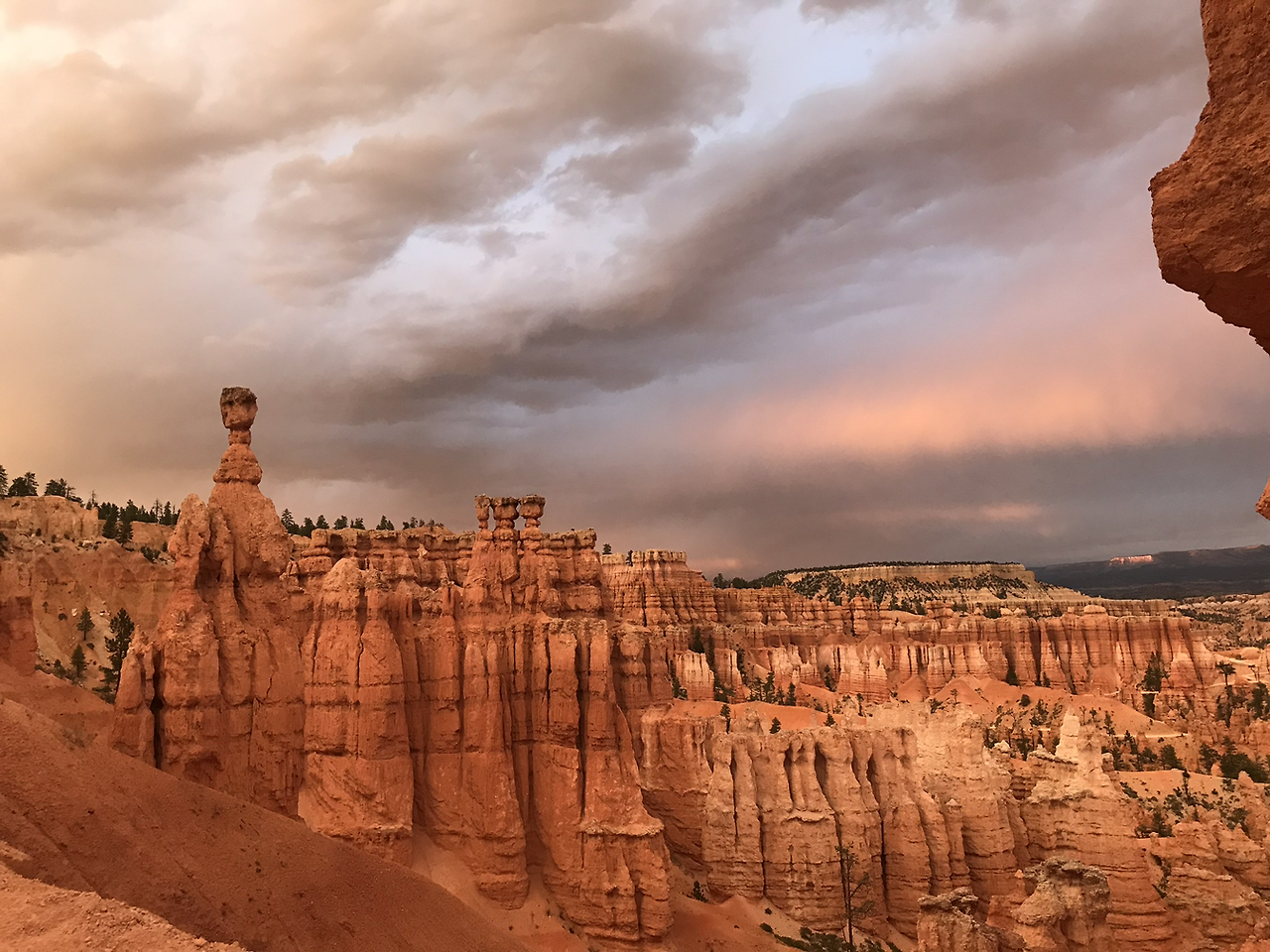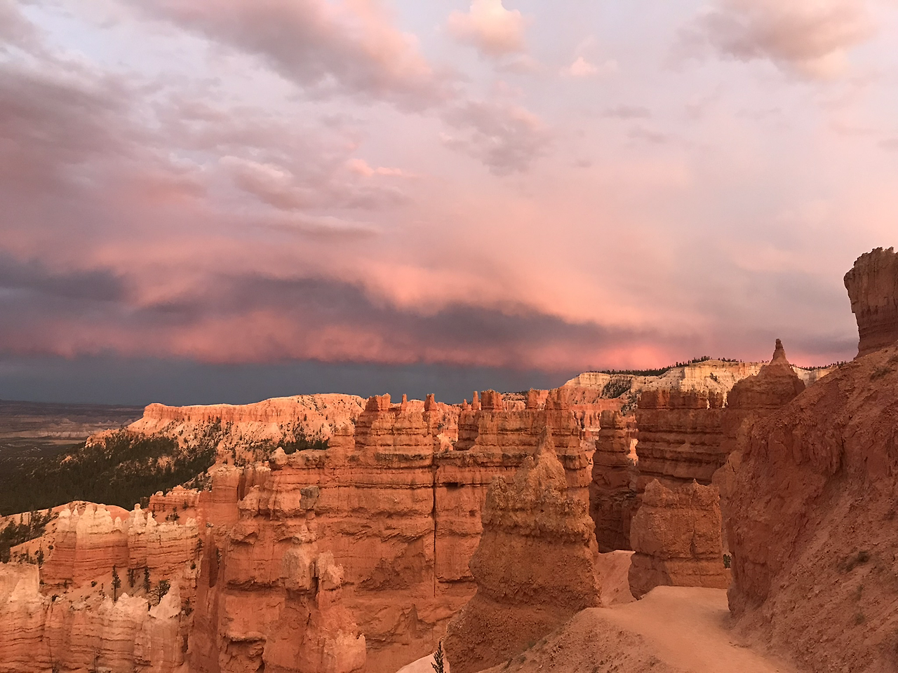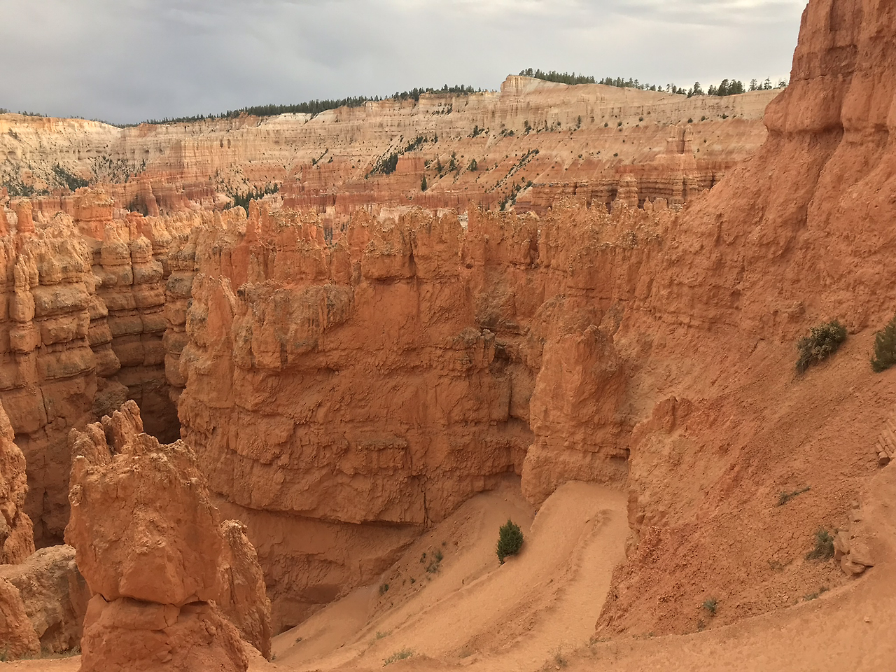 식사 후 아들과 남편이 회복을 하고 다함께 선셋 포인트에 트래킹을 하러 다시 갔다. 구름이 많고 바람도 불어 날씨가 좋지 않았지만 오히려 트래킹 하기에는 더 좋았던 것 같다. 나바호 룹 트레일은 1.3마일 정도였는데 가지 못해 아쉬웠던 엔탈롭 캐년 못지 않게 좋았다. 아름다운 사진을 많이 찍고 숙소로 돌아와 씻고 빨래 개고 자려고 한다. 몸과 마음이 피곤하다.