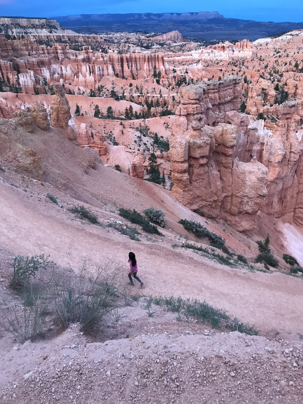비지터 센터에 가서 전시를 보면서 주니어 레인저 책 미션을 힘겹게 하다 Sun set point에 트래킹을 하러 갔다. 트래킹이 싫은 둘째 아들은 아침부터 계속 짜증을 내다 선셋 포인트에서 홀로 사라졌다. 미국에서 미아될 뻔한 아들은 사태파악을 못했고, 간 떨어질 뻔한 남편은 결국 숙소로 돌아와 드러누웠다.