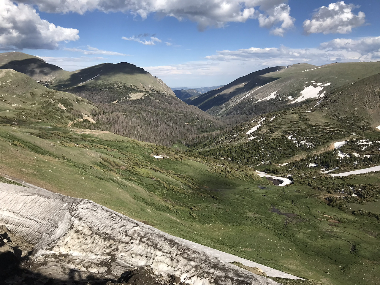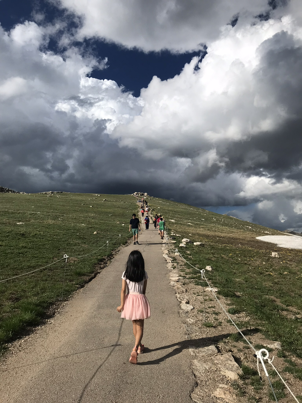 - 멋진 풍경과 수영장의 추억을 주었던 모압을 떠나 6시간을 달려 로키산 국립공원에 입성했다. 로키산 국립공원은 미리 준비하지 않은 코스였는데, 집으로 가는 길에 있어 들려보기로 한 것이다. 점점 고도가 높아지고 분명 차를 탔는데 하늘로 올라가는 느낌으로 산을 올라갔다. 더운 여름인데 옆에는 쌓인 눈도 있었다. 34번 트레일 랏지 로드를 올라 알파인 비지터 센터까지 갔다. 거기에서 정차해 툰드라 길에 트래킹을 했다. 고산병처럼 어지러움을 약간 느꼈다. 해발 3000미터가 넘는 곳이다. 아름다운 로키산이었다.