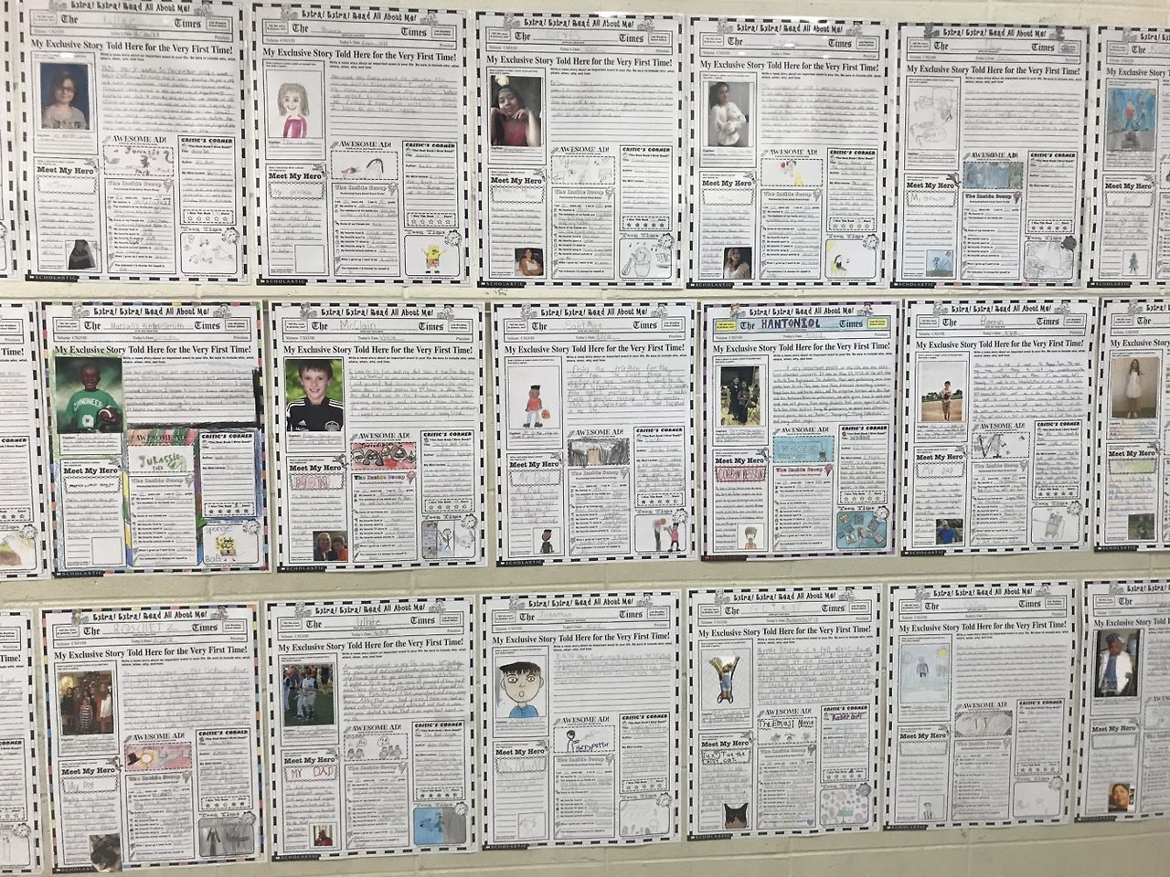 복도에 큰 아들이 가져왔던 신문 만들기 숙제가 주루룩 전시되어 있었다. 왠지 게시할 것 같아서 안 하려다가 숙제를 해 갔는데