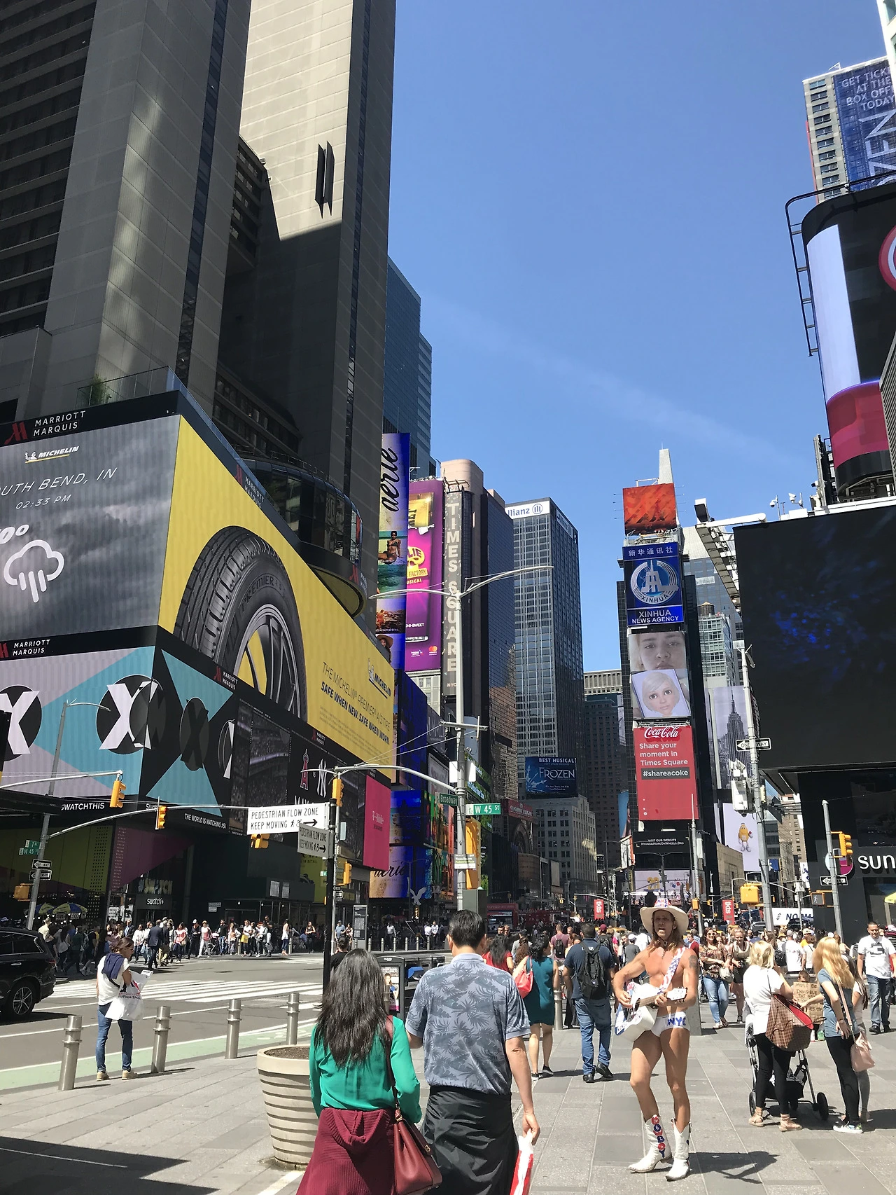 브로드웨이를 따라 타임스퀘어로 걸어 올라갔다.