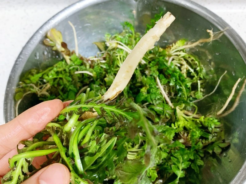 냉이는 흙도 많고 뿌리도 굵어 손이 많이 갑니다. 누렇게 뜬 잎들도 제거하고 굵은 뿌리는 반으로 갈라놓고 깨끗하게 씻어줍니다.