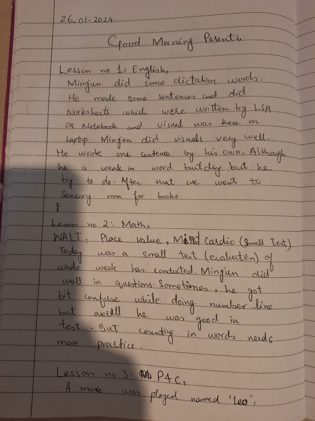 보조 선생님은 매일매일 둘째가 어떤 과목을 어떻게 공부하고 무엇을 배웠는지 A4 노트 몇 장에 걸쳐 매일매일 전달해 주었다. 필요하다고 하면 전화 통화로 함께 방법을 찾아나갔다. 둘째는 뉴로피드백 치료로 틱의 증상이 완화되었다면 마음 편한 학교 덕분에 거의 증상이 없어질 정도가 되었다. 학교가 너무 재밌고 친구들과 재미나게 생활해서 너무 좋다고 하는 그 말에 앞에서는 너무 좋겠다고 깔깔거렸지만 뒤에서는 감사의 눈물이 주룩주룩 흐른 게 하루 이틀이 아니다. 이렇게 좋은 학교라는 곳~~ 들어가기가 너무 힘들어 한국을 돌아가야 하나 고민이 될 정도였지만 우리 아들들의 학교생활은 다행히 해피앤딩이다.