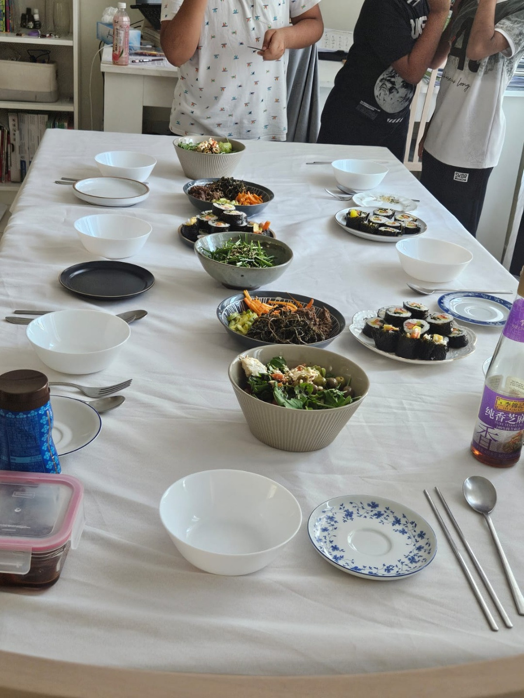 어떤 날은 친한 친구 한 명을 초대해 김밥도 만들고 집 근처 쇼핑몰도 가고, 동네 자전거도 함께 타며 주말을 보내기도 하였고 4~5명의 친구와 엄마들도 함께 초대하여 커뮤니티 수영장도 가고 내가 비빔밥, 김밥, 샐러드를 준비하면 친구 엄마들은 전통 인도 음식이나 후식을 챙겨 와 한국 음식도, 인도 음식도 함께 먹어볼 수 있었다. 다들 일본 음식이나 중국 음식은 먹어본 경험이 있으나 한국 음식은 처음으로 먹어본다 말하며 건강식 같아 너무 좋다고 이야기를 했다. 여러 야채를 돌돌 말아먹는 김밥이나 섞어서 먹는 비빔밥이 신기했나 보다. 몸에도 좋고 맛도 좋은 한식!!