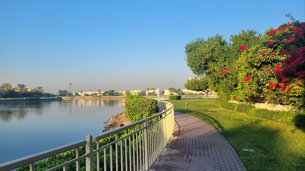 23년 3월 23~27일 우리가 살게 된 주택 단지는 두바이에서도 가족단위, 반려 동물이 있는 가족들이 많이 사는 단지로 유명하다. 스프링스라는 곳으로 전체 16개 구역으로 나뉘어 구역마다 인공적으로 만든 작은 호수가 있었고 호수를 중심으로 집들이 배치되어 있었다. 호수에 붙어 있는 집들은 임대료가 높았고, 그 다음 블럭의 주택들은 조금 더 저렴한 임대료로 책정되어 있었다. 우리 집은 현관과 주차장이 있는 곳의 2층은 아이들 방이었는데 그곳에서는 골목을 지나 호수가 보였다.