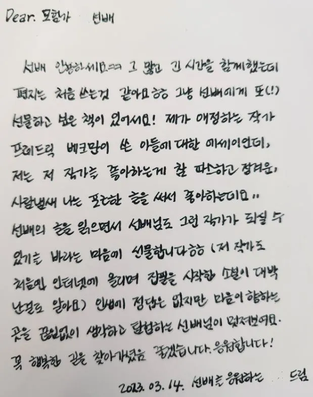 책의 내용도 좋지만 그녀가 정성스레 적은 글들이 오히려 내 마음을 울렸다.