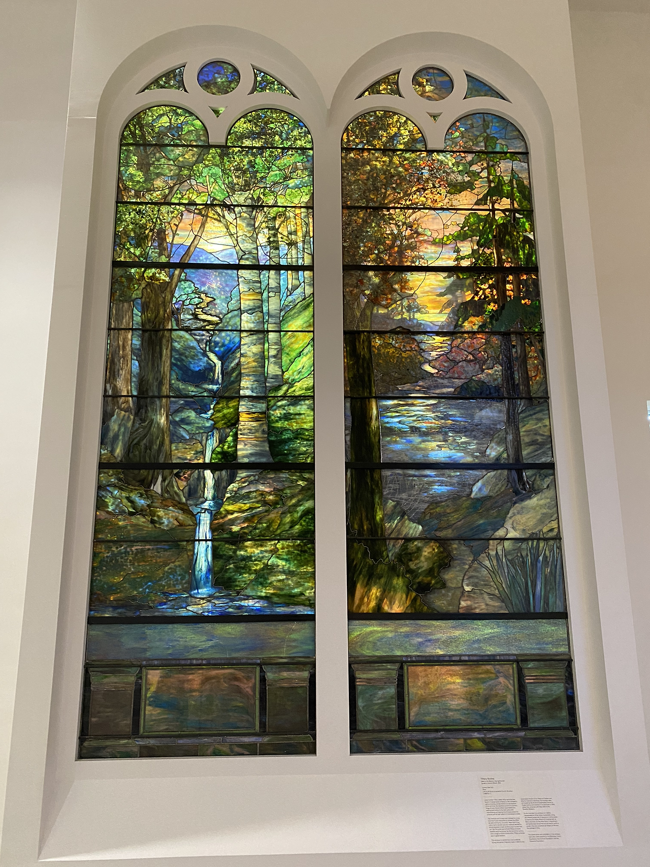 시카고 미술관(Art Institute of Chicago)에서 본 티파니 창문과 유사해서 기억에 남는다. 캔버스 위 회화와는 다르게 색유리로 만들어져 더 영롱한 느낌을 준다. 빛의 밝기에 따라 자연의 모습이 달라진다는 점에서 더 사실적인 묘사가 가능하다. 마치 현대판 모네의 작품을 보는 기분이다.