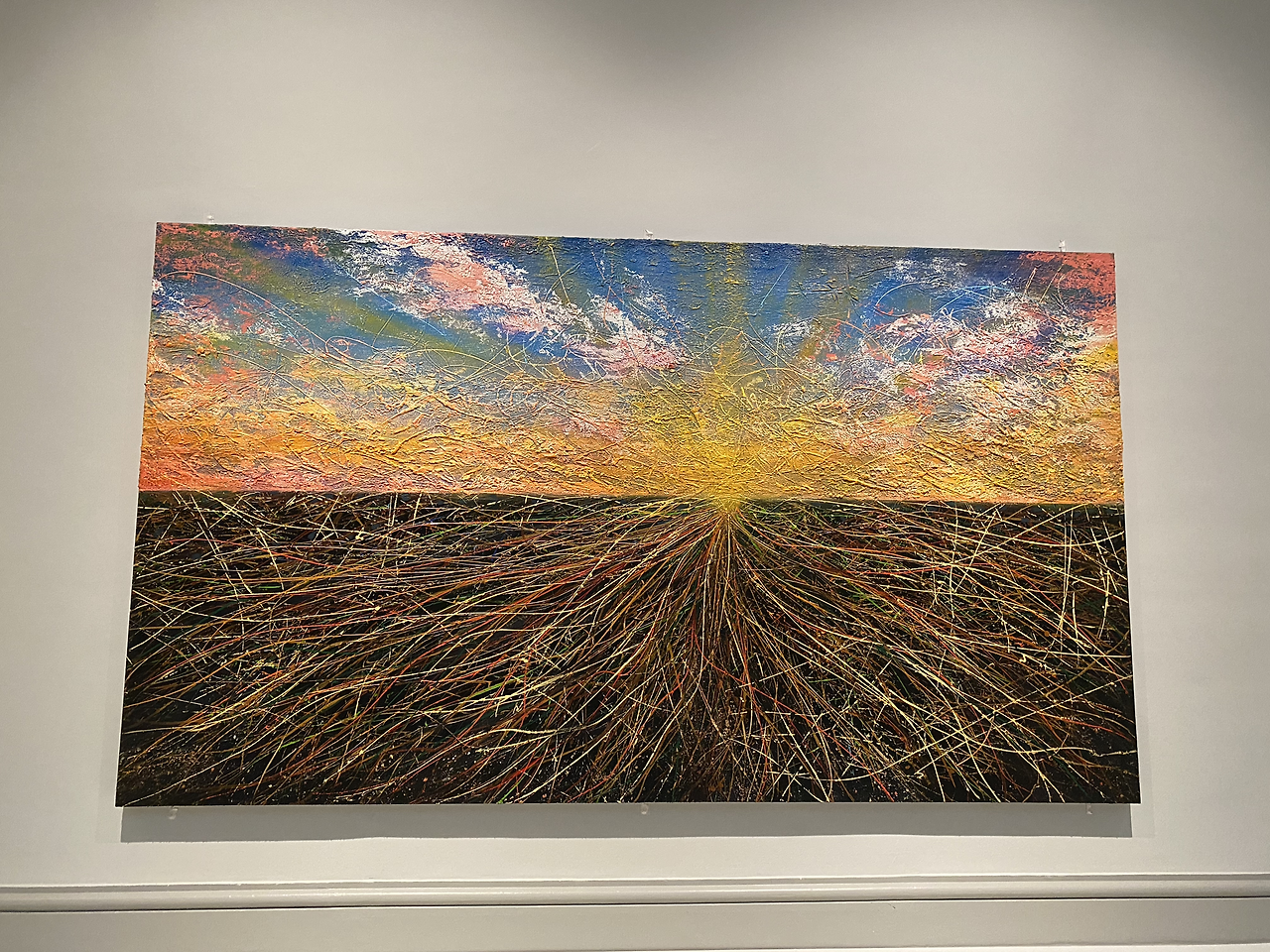 마치 형형색 위 검은색을 칠한 다음 스크래치한 느낌이다. 땅과 하늘의 기운이 동시에 느껴진다. 두 가지 기운을 받으며 서 있는 우리 인간은 얼마나 강렬한 힘을 내뿜을 수 있을까.