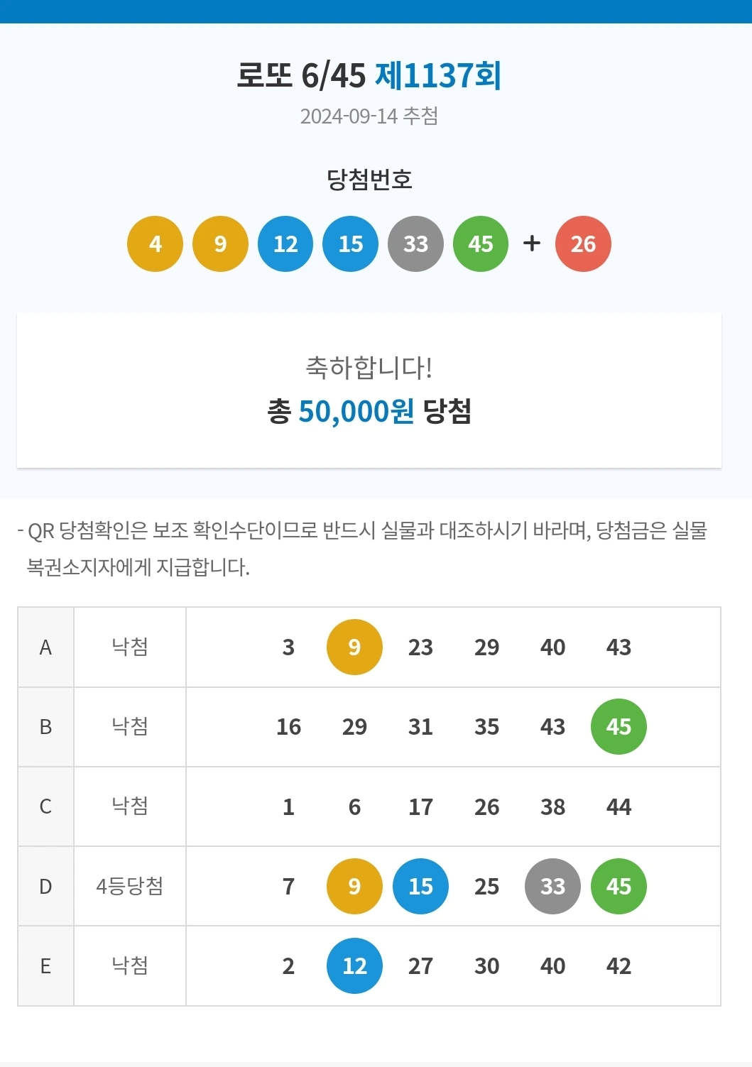 시댁아파트 상가 판매점에서 두 번째 당첨.