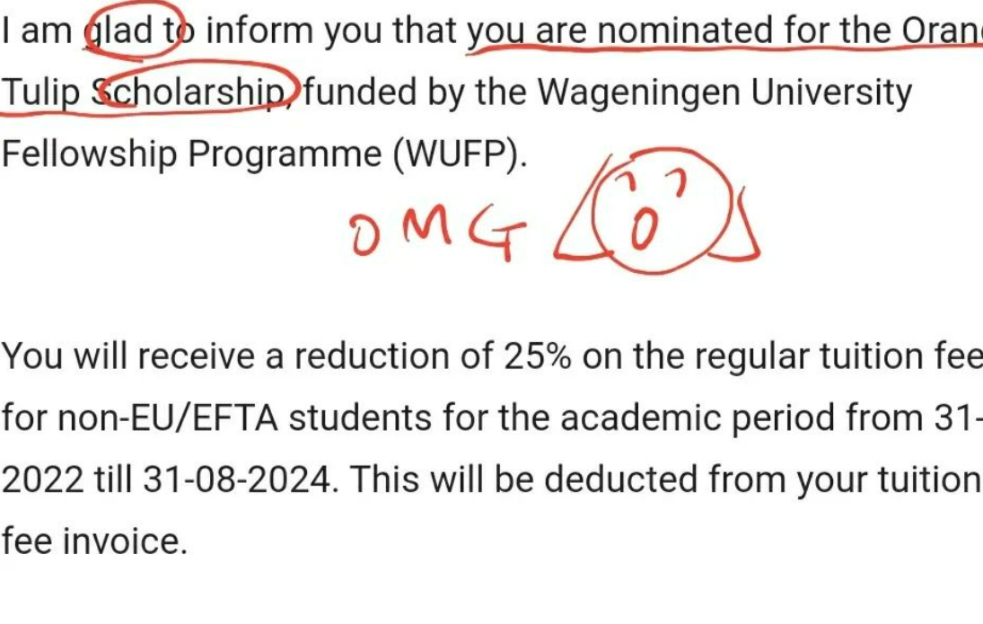 '지속가능한 삶'이라는 세계적 타이틀을 쥐고 있는 네덜란드 바헤닝언 대학교에서 딱 두세명 뽑는다는 튤립장학금에 선정되었다는 소식! 장학금은 천오백만원. (이 돈이면 일년치 생활비는 될듯).