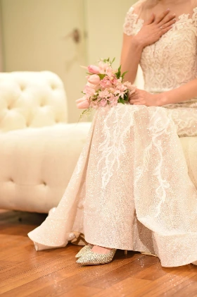 그렇게 몇 년 동안 하이힐과 그와 함께 따라오는 각선미를 어느 정도 포기하고 살다가, 결혼 전 남편에게 굽 높은 웨딩슈즈를 선물로 받았다. 아무리 힐을 신지 못한다고 해도 결혼식에서는 더 늘씬하고 예뻐 보이고 싶은 게 인지상정 아닐까. 눈을 꼭 감고 8cm짜리 하이힐을 신었다. 덕분에 나는 그날 하루 175cm의 키 큰 신부가 되었지만, 식 내내 위기가 많았다. 버진로드를 걸어가며 치렁치렁한 드레스와 익숙하지 않은 높은 굽에 휘청거릴까 봐 걱정이 이만저만이 아니었다. 최대한 천천히 걸으며 제발 넘어지지만 않게 해달라고 마음속으로 바라고 또 바랄 뿐이었다. 또 식 2부에서 하객들에게 인사를 드리러 다닐 때쯤엔 발이 너무 아파 맨발로 걷고 싶을 정도였다. 다행히 한 번도 넘어지지 않고 무사히 식을 마쳤지만, 내 가엾은 발은 빨갛게 퉁퉁 부어 있었다. 너무나도 예쁜 내 웨딩 슈즈는 그 후 지금까지도 상자에 넣어 신발장 높은 칸에 고이 모셔두고 있다.
