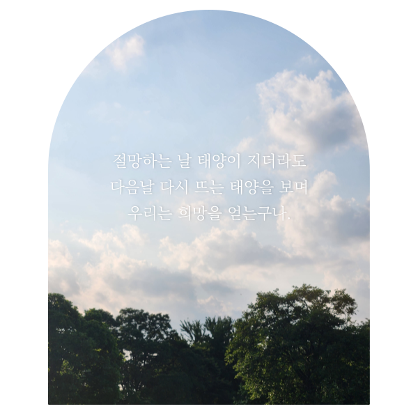 ‘절망하는 날 태양이 지더라도 다음날 다시 뜨는 태양을 보며 우리는 희망을 얻는구나.’
