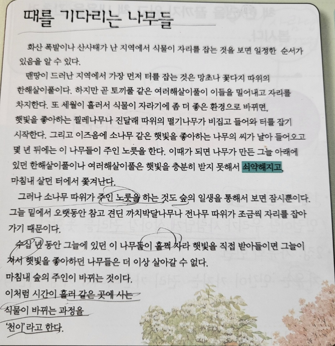 초등학교 4학년 과학 교과서 앞장에서 읽은 글에 알 수 없는 깊은 감정을 느낀 적이 있다. 할머니의 마음이 전해진 것인지 아이도 책에 줄을 그으며 함께 글을 되풀이해서 읽고 이야기를 나누었다.