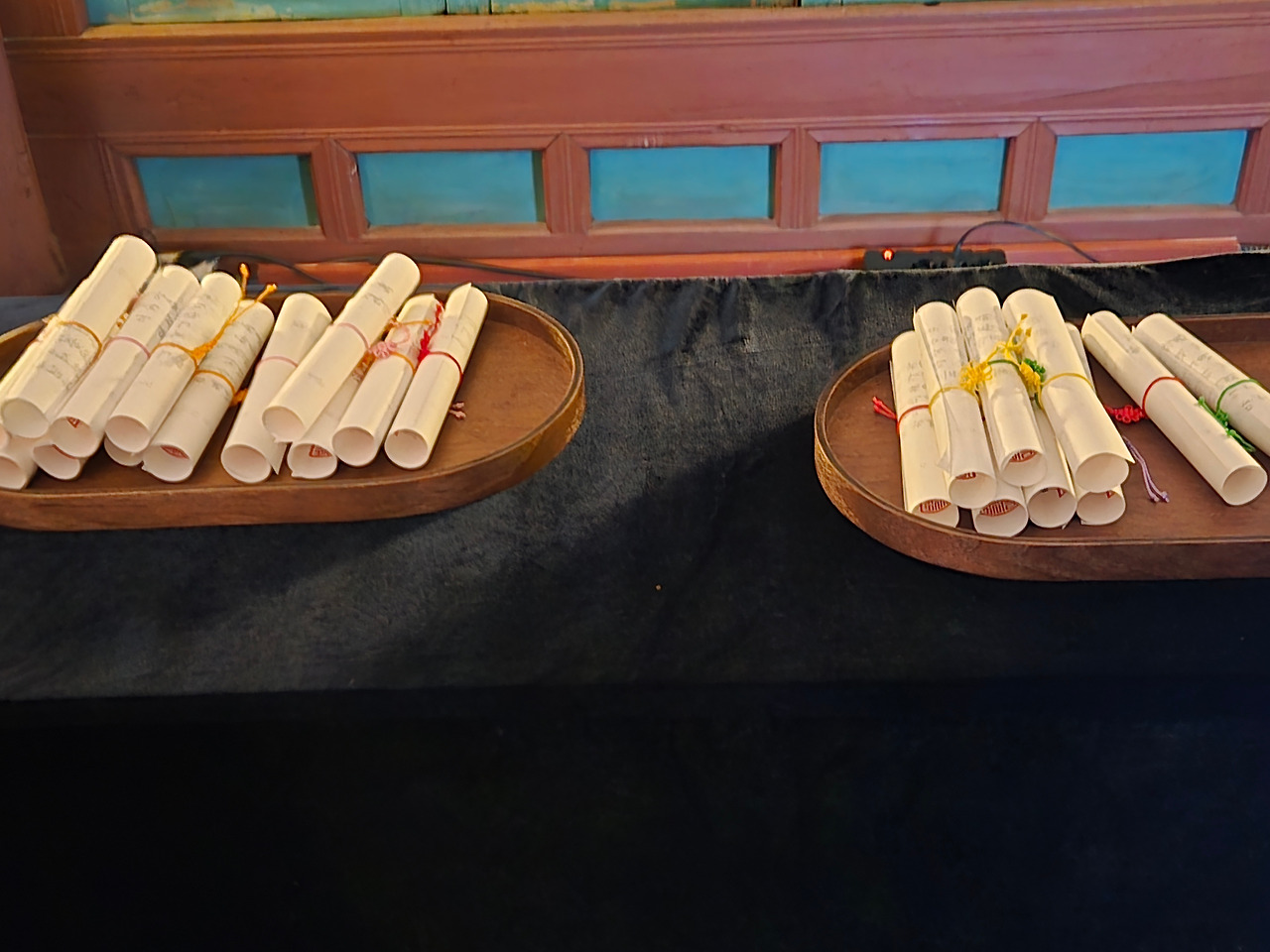 '고종'의 서재이자 외국사신접견소였던 '집옥재'와 '팔우정'에서는 임금님이 하사하시는 '포춘메모'같은 선물이 색색의 띠를 두르고 밀지처럼 놓여 있어 하나씩 가져왔다.