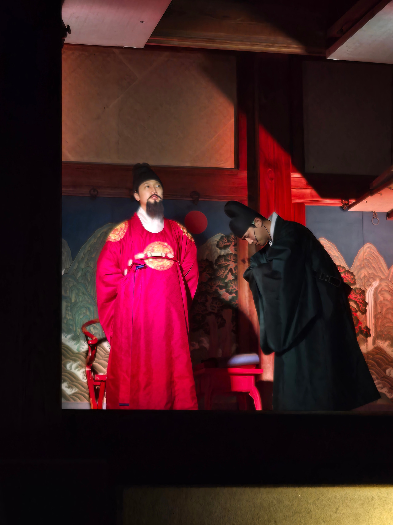 '고종황제'와 '명성황후'가 거처하던 '건천궁'은 우리나라 최초의 전등 을밝힌 곳이라고 했다. 멀리서 볼 때 사람모양의 모형인 줄 알았는데 가까이 가자 임금님과 신하가 전등을 두고 담소를 나누고 있었다.