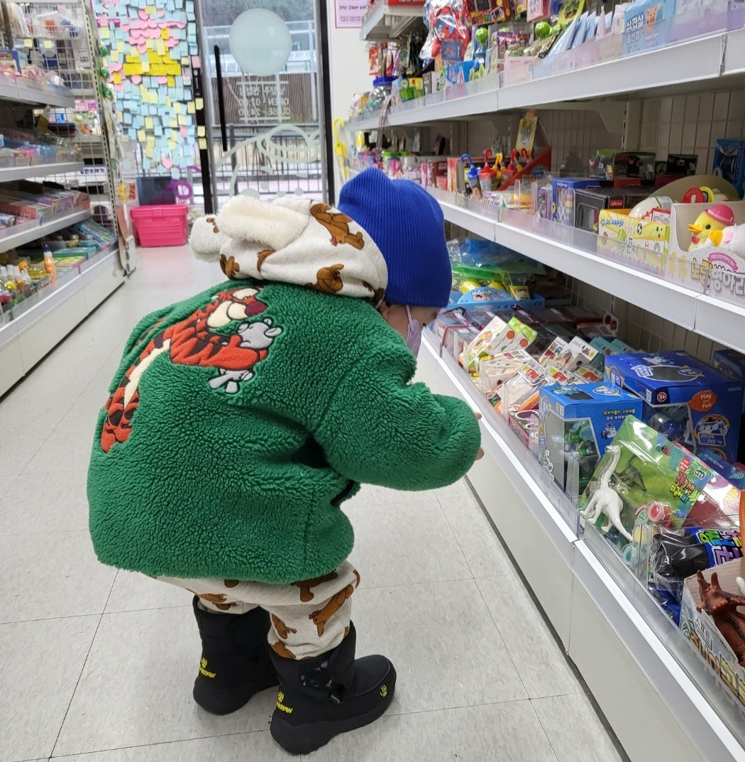 두 번째 외출이다. 길바닥에 담배꽁초가 눈에 띈다. 담배꽁초를 처음 본 아기는 신기하다. 찾다 보니 여기저기 담배꽁초가 많이 보인다. 아파트와 멀어질수록 담배가 많아지고 아파트로 들어설수록 보이지 않는다. 집에 들어가기 전 급하게 하나 피우고 발로 비벼 끄고 들어가는 걸까? 모양이 온전한 담배보다는 바닥에 문질러 찌그러진 모양이 많다. 직장인들의 고달픔을 담배꽁초가 말해주는 것 같다. 문방구 앞에 세워진 장난감 자판기도 한참 만져보고 문방구 들어가 레드빠방이도 하나 사서 들어왔다. 이제 낮잠시간이다.
