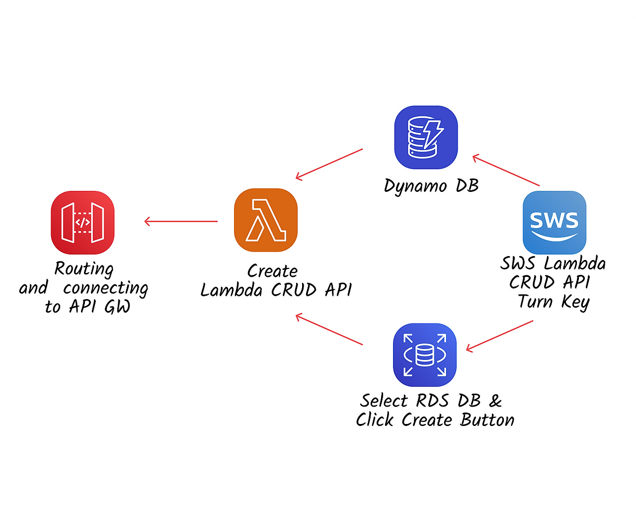 SteveWebService에서 Lambda CRUD API Turn Key를 통해서 SWS Project를 선택하고 DynamoDB 또는 RDS 인스턴스 명을 선택하고 테이블 또는 컬렉션 명을 입력하면 AWS Lambda로 입력한 테이블 또는 컬렉션에 대한 CRUD API가 생성되어 선택한 SWS Project의 API Gateway에 연결되어 바로 CRUD API를 사용할 수 있게하는 것이다.