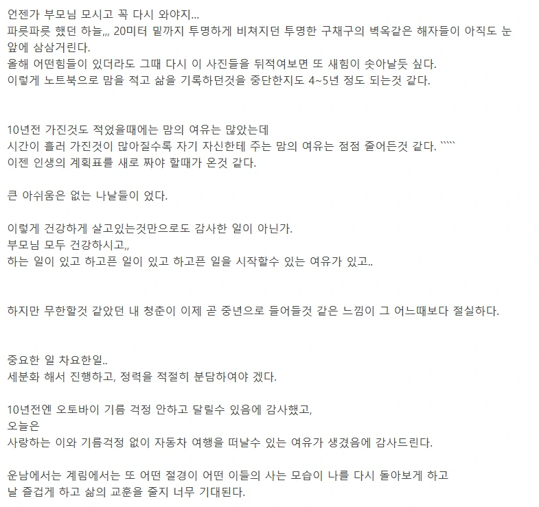 하루 하루 숨쉬는것조차 힘이 들던 날들중 일기처럼 적어두던 글들이 내겐 숨을 쉴수 있게 해주는 산소 호흡기 같은 것이었다. 스스로를 위한 작은 위로가 다른 누군가에게 작은 위로가