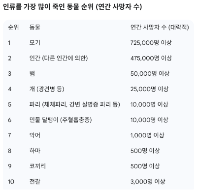 그래도 엄연히 인간을 가장 많이 죽이는 생명체는 모기가 아닌가.