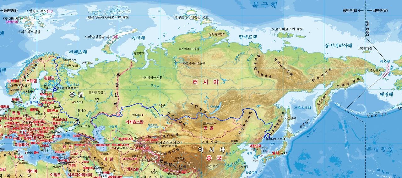 나는 러시아 지도를 펼칠 때마다 묘한 긴장감과 경외심을 느낀다. 유럽의 끝자락에서 시작된 선은, 우랄산맥을 넘고 시베리아를 지나 태평양에 닿는다. 눈앞에 놓인 지도 한 장이 실제 세계의 8분의 1을 차지하고 있다는 사실은 언제나 낯설고도 장엄하다. 이 나라는 세계에서 가장 넓은 영토를 가진 제국이며, 유럽과 아시아를 동시에 품고 있다. 서쪽으로는 유럽의 심장부에서 독일, 폴란드와 마주하고, 동쪽으로는 우리나라와 태평양을 향한다. 북쪽으로는 얼음의 바다, 북극해가 있고, 남쪽으로는 코카서스(캅카스) 산맥과 중앙아시아의 거친 지대가 펼쳐져 있다. 이처럼 사방이 전혀 다른 얼굴을 가진 러시아의 땅은, 이 나라의 모든 것을 결정해 왔다.