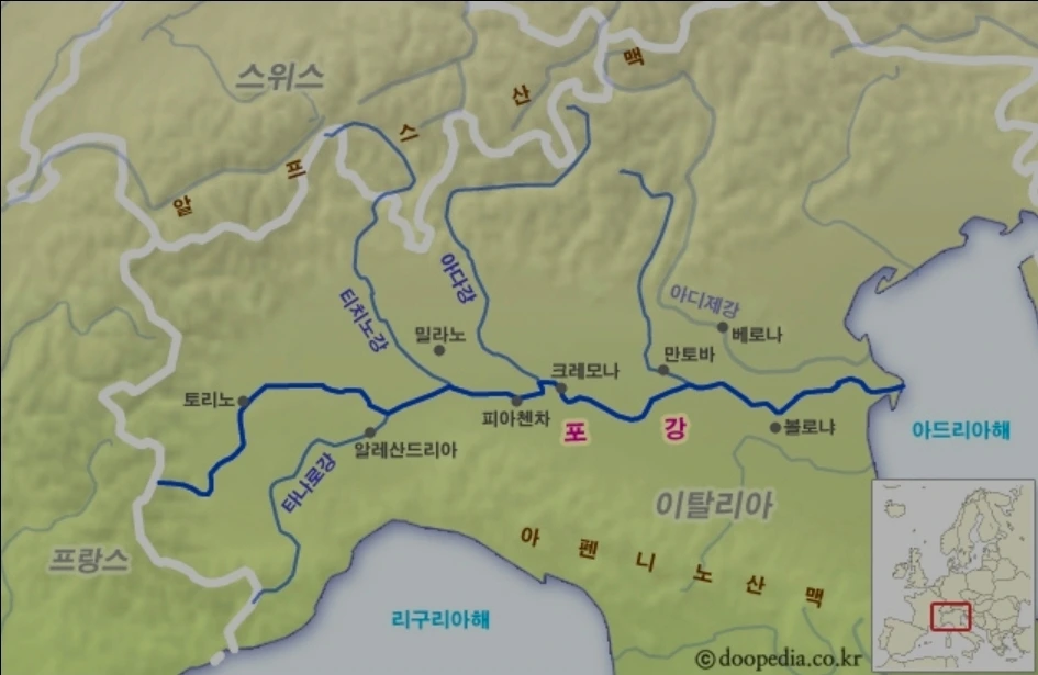 북이탈리아를 가로지르는 포강은 알프스를 넘어온 모든 군대가 만나는 병참의 강이었다. 고대 로마는 이 강을 따라 군단을 이동시켰고, 평야의 곡물을 실어 날랐다. 중세 베네치아는 운하를 뚫어 상선과 군선을 동시에 띄웠다. 운하는 상업의 혈관이자 전시에는 무기를 나르는 신경망이었다. 제2차 세계대전 말, 독일군은 포강 북쪽에서 마지막 방어선을 구축했다. 연합군은 포강 다리를 폭파하고 다시 부교를 만들어 탱크를 밀어 넣었다. 이 강은 단순한 물길이 아니라 전선을 나눈 피의 강이었다.