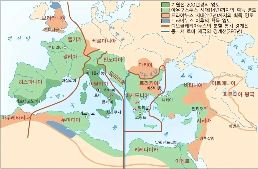 고대 로마제국의 위대함은 바로 이 지리에서 출발했다. 지중해 한가운데에 반도를 길게 드리운 로마는 강력한 육군과 혁신적인 해군으로 카르타고(튀니지를 중심로한 북아프리카와 중동 일부에 형성된 국가)를 꺾고, 북아프리카에서 에스파냐(스페인)까지 뻗어갔다. 알프스가 방패였다면 바다는 무기였다. 길 위에 돌을 깔고 도로를 만들었고, 바다 위에 군선을 띄워 지중해를 내해처럼 다스렸다. 지형을 품에 안은 옛 제국은 사라졌지만 그 길과 항만, 요새와 성벽은 지금도 살아 숨 쉰다.