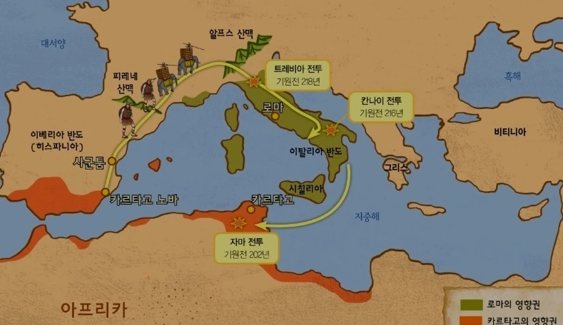 이탈리아 북쪽 알프스는 유럽과 반도를 가르는 첫 관문이었다. 높고 단단한 이 산맥은 로마시대에도, 중세에도, 현대에도 언제나 첫 방패였다. 하지만 방패는 종종 문이 되었다. 기원전 218년, 한니발(고대 카르타고 군사 지도자)은 코끼리를 이끌고 이베리아 반도(에스파냐(스페인)) 피레네 산맥을 지나 알프스를 넘었다. 그리고 15년 동안 로마를 멸망 직전까지 숨통을 조였다. 로마는 끝까지 항전했고 기어이 지중해를 건너 카르타고의 중심인 북아프리카를 역공하면서 코끼리 부대를 몰아냈다. 그러나 한니발의 침략 경로는 후세에 ‘불가능을 깨는 길’로 남았다.