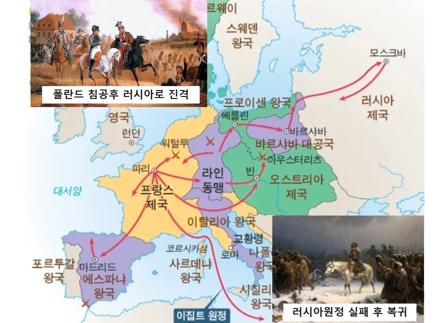 1812년, 프랑스군은 60만 대군을 이끌고 러시아로 진격했다. 그 길은 곧 폴란드 평야였다. 여름의 행렬은 승리처럼 보였으나, 겨울이 오자 같은 평야는 퇴각의 길이 되었다. 혹독한 추위 속에서 돌아온 것은 잔병뿐이었다. 이때 폴란드의 평야는 승리의 관문이자 패배의 무덤이었다.