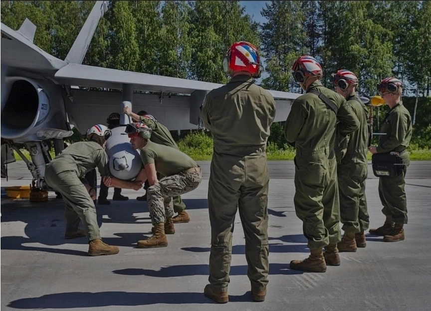 핀란드 공군과 연합훈련 중인 미 해병대 F/A-18 Hornet 전폭기