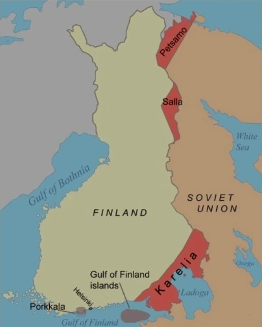 겨울전쟁으로 잃어 버린 핀란드 영토(적색)