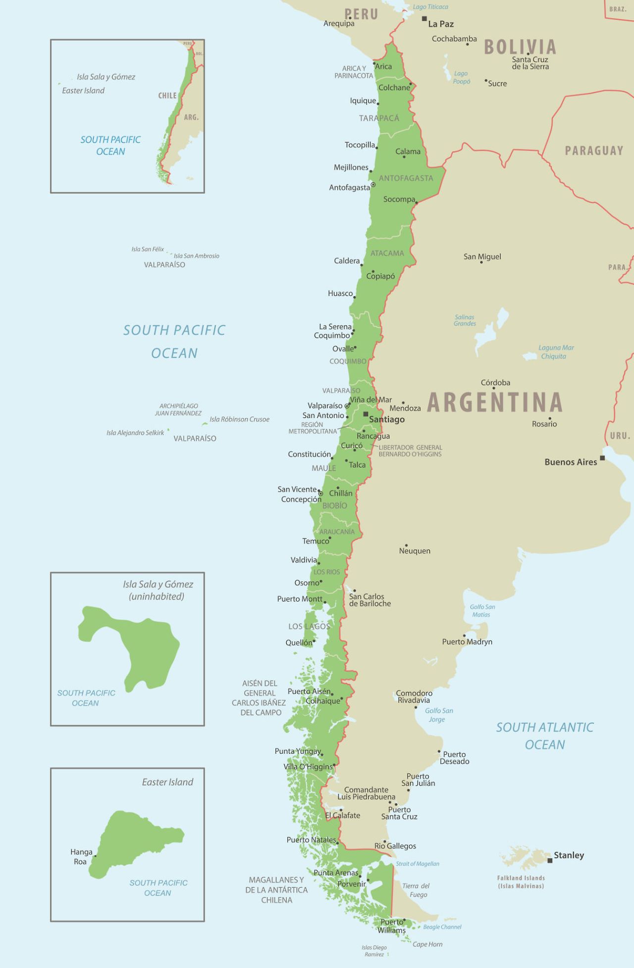세계에서 가장 남북으로 길쭉한 국토(약 4,300km)를 가진 나라로, 평균 폭이 180km에 불과하며, 동쪽의 안데스 산맥과 서쪽의 태평양 사이에 위치한 지리적 구조가 만들어낸 결과다.