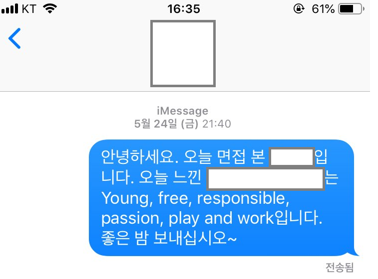 이 곳을 지원하며 짧지만 매우 집중했고 즐겁고 신나는 기분을 유지하면서 면접까지 마쳤던 하나의 기억은 오래도록 잔상에 남을 것 같다. 원했던 곳이고 채용여부과 상관없이 소통을 하고 싶다는 생각이 들었던지라 문자도 보내고, 며칠간은 퇴근길에 면접 장소를 지나가며 '아련한 눈빛 발사' 도 했었다.