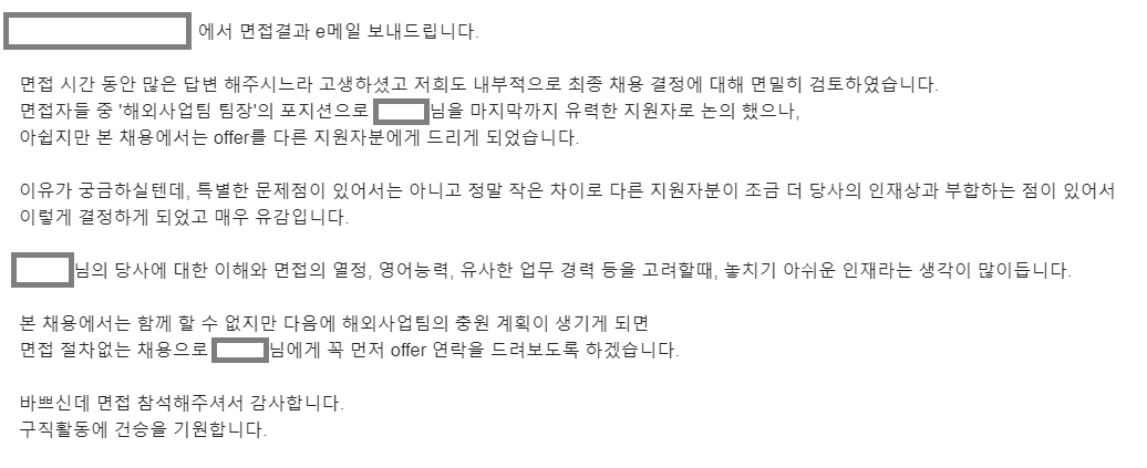 일주일 전 면접을 보았단 곳에서의 메일이다.