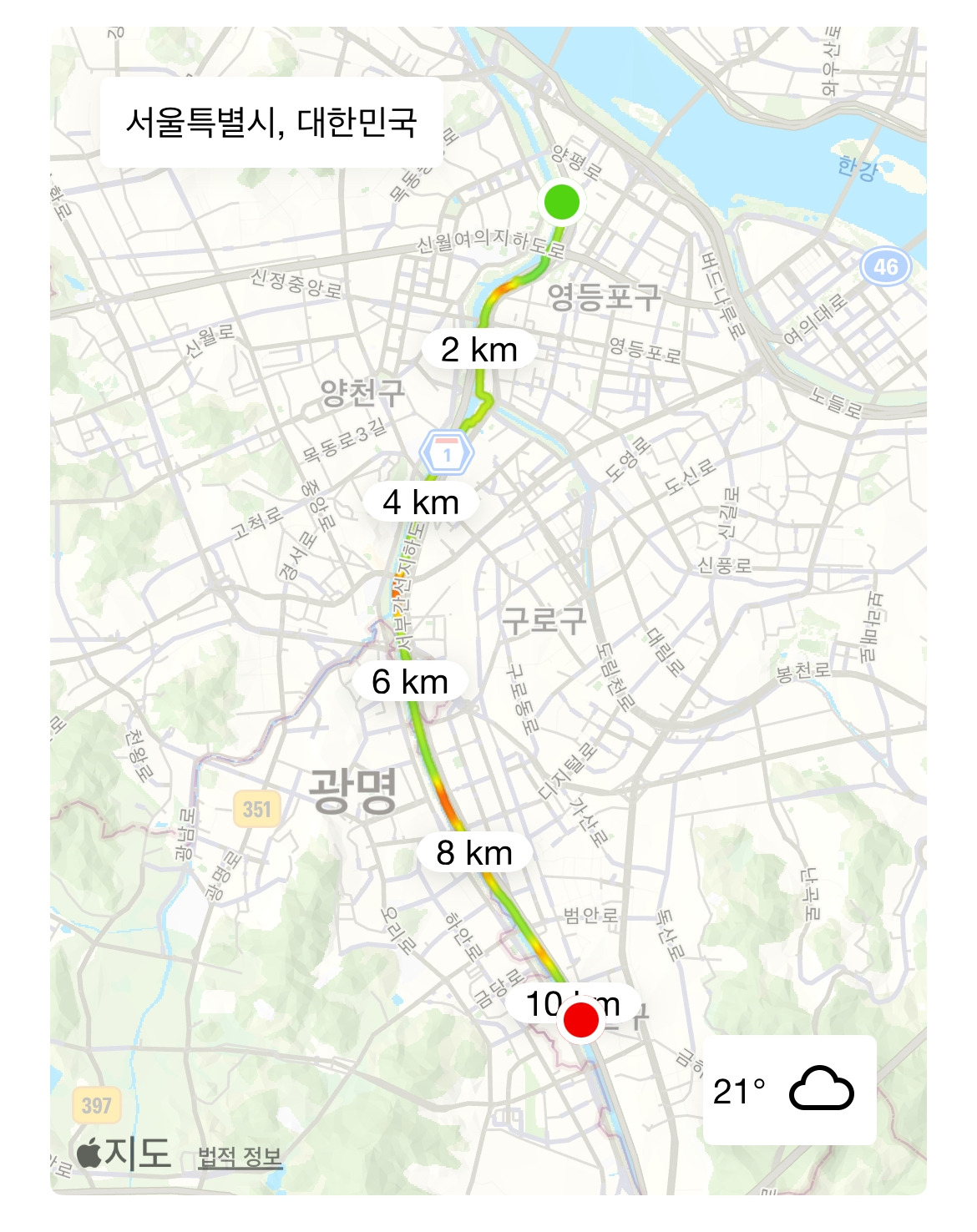 15분 뛰면 걸린 시간, 뛴 거리 알려주는 걸로 바꿨다.