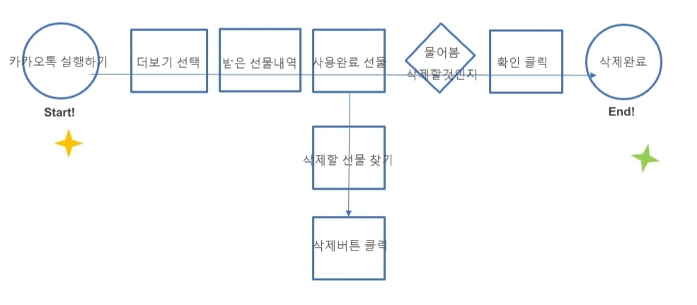 4. 모바일 카카오톡 앱에서 ‘가장 최근에 사용한 선물내역 삭제하기’에 대한 Task flow를 작성 하기