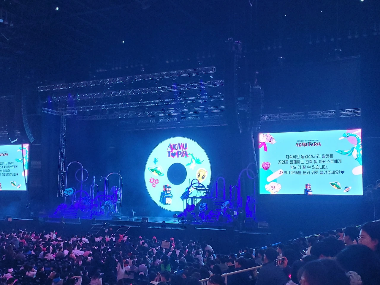 인천 인스파이어 아레나에서 했는데 천장스크린이 웅장했다. 하지만, 사람들이 너~무 많아 부딪치고 지나가기도 힘들었다.